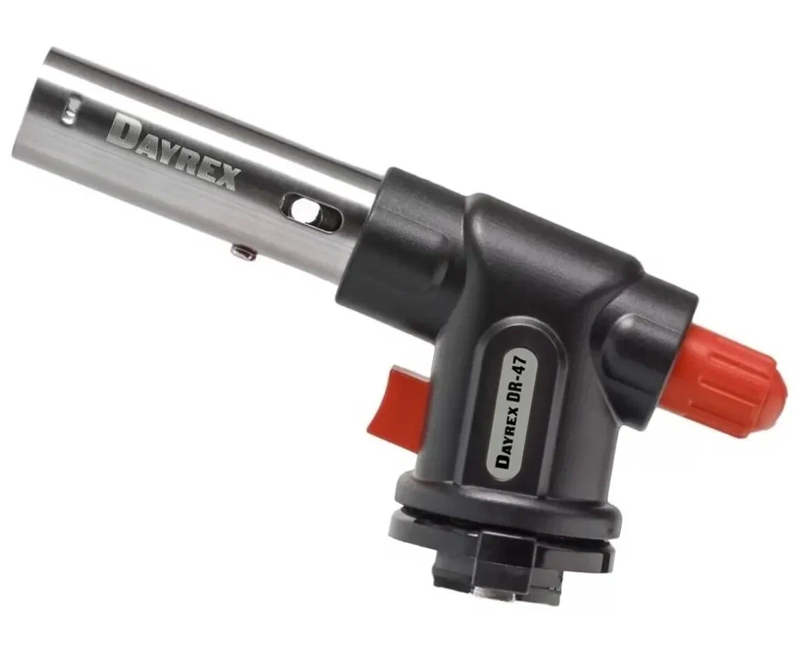 Преимущества горелки: отсутствие нагара, высокий коэффициент полезного действия, эргономичный дизайн, мощное регулируемое пламя, система Anti-Leakige предохраняющая от утечки газа, электронная система мгновенного воспламенения, беспроводная, безопасная, надежная в применении, суперкомпактная.Горелку при работе нельзя переворачивать.Области применения: ремонтные работы, техническое творчество, карамелизация, лучшее приспособление для розжига тандыра, камина, незаменима на охоте, рыбалке.Использование газа DAYREX увеличивает срок службы горелки более чем в два раза.