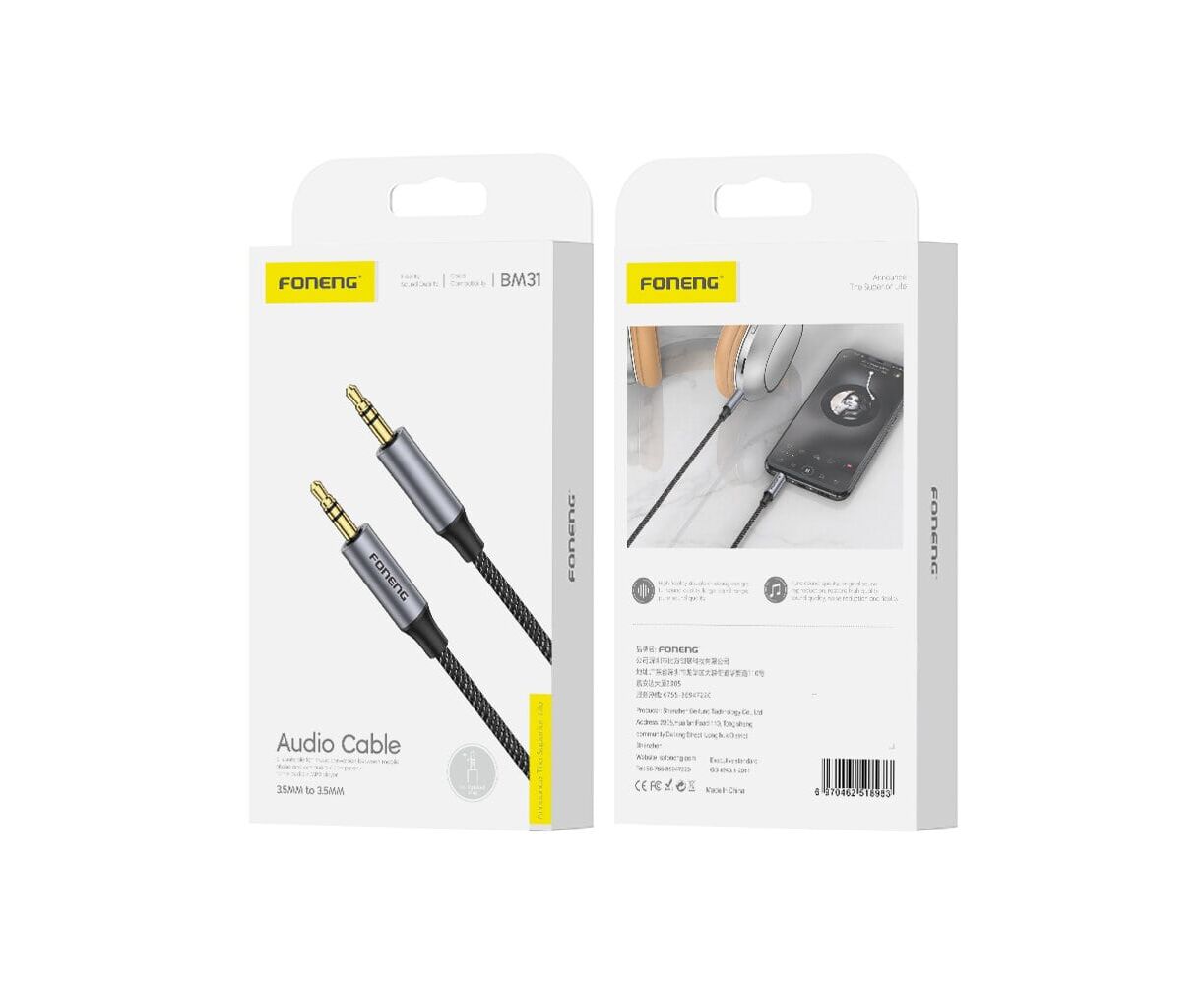 Кабель AUX Jack 3,5mm - Jack 3,5mm Foneng BM31, 1M (Metal Gray)