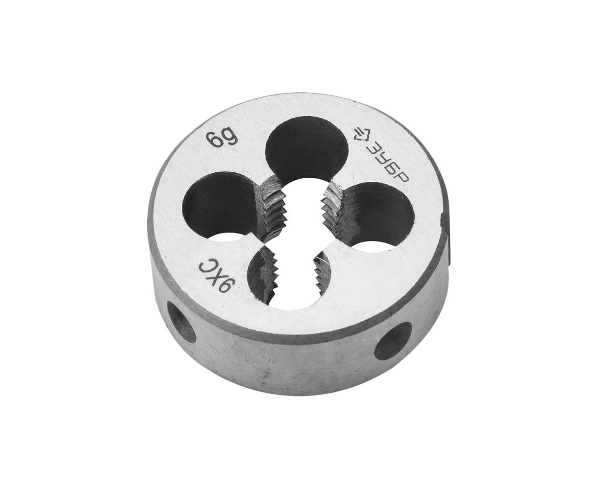Круглая ручная плашка для нарезания метрической резьбы, мелкий шаг, Зубр МАСТЕР" М14x1,5 4-28022-14-1.5 выполнена из легированной стали 9ХС. Сплав дополнен хромом, кремнием и углеродом для большей жесткости.