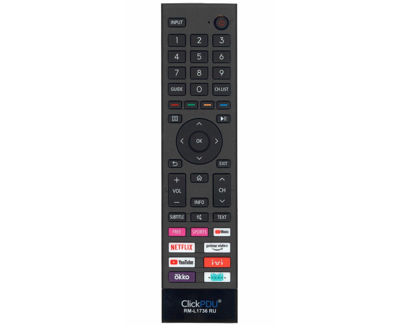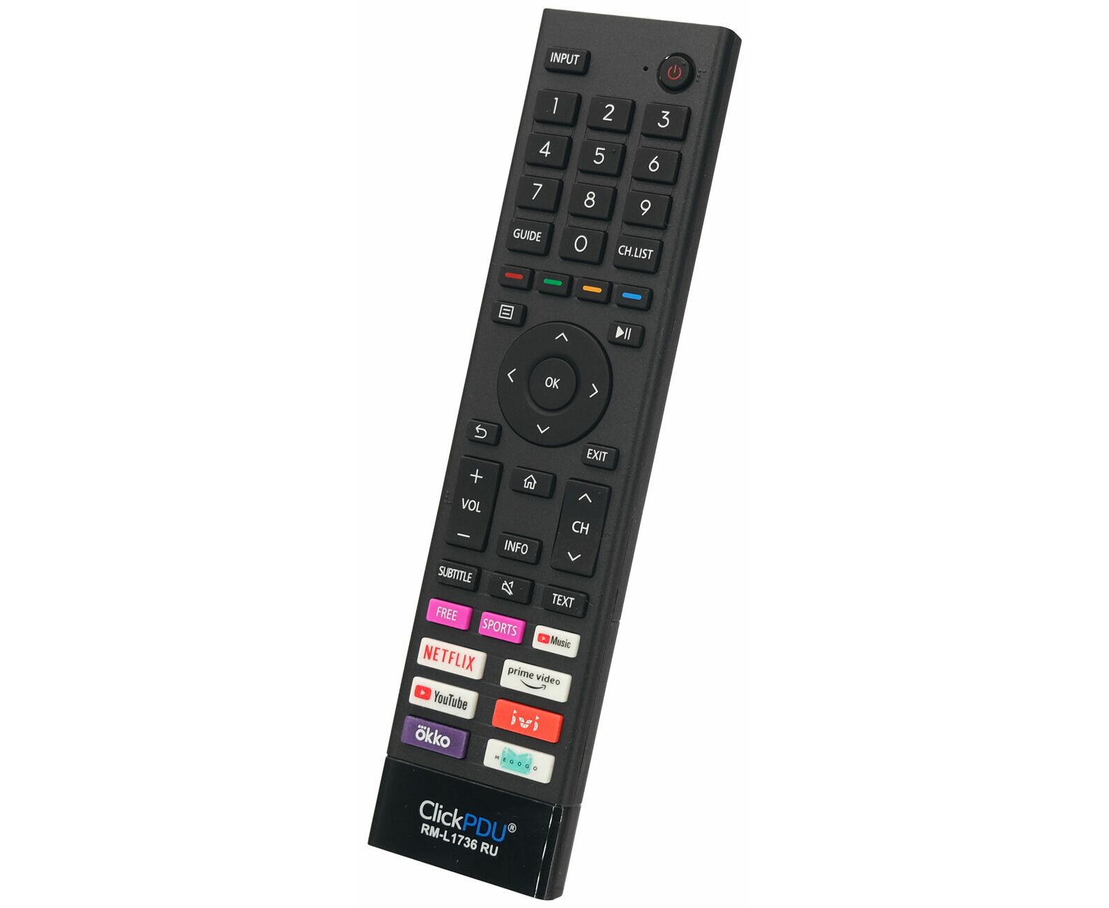 Универсальный пульт ClickPdu RM-L1736 RU (для TV HISENSE, DEXP, DNS) – это универсальный пульт, который заменяет множество пультов определенного бренда. В основном эти пульты не требуют настройки, просто вставили батарейки и пользуетесь, но иногда, когда настройка все-таки необходима, она сводится к нажатию всего двух клавиш. Из чего можно сделать вывод, что им могут пользоваться даже люди далекие от электроники. Его корпус очень часто совпадает с корпусом вашего родного пульта, поэтому у вас не будет привыкания к расположению на нем кнопок. Все они находятся на привычных местах.
